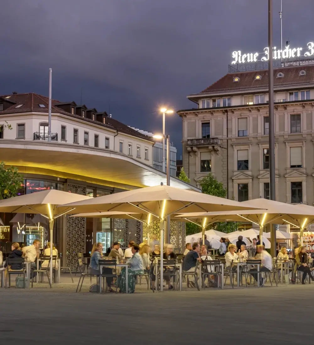 Ontdek de mogelijkheden voor inbouw LED verlichting op uw horeca parasols. Beschikbaar op de Fortello LED, Castello Pro & Palazzo serie.